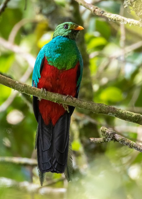 In all plumages, look for entirely dark tail and dark eye to help separate from similar crested quetzal. They sometimes migrate to lower elevations during the wet season, between may and october. This species lives in western south america, where it occupies humid highland forest habitats of the andes in up to 3100 m. Found in forests and edges in the subtropical zones. Can be difficult to spot.